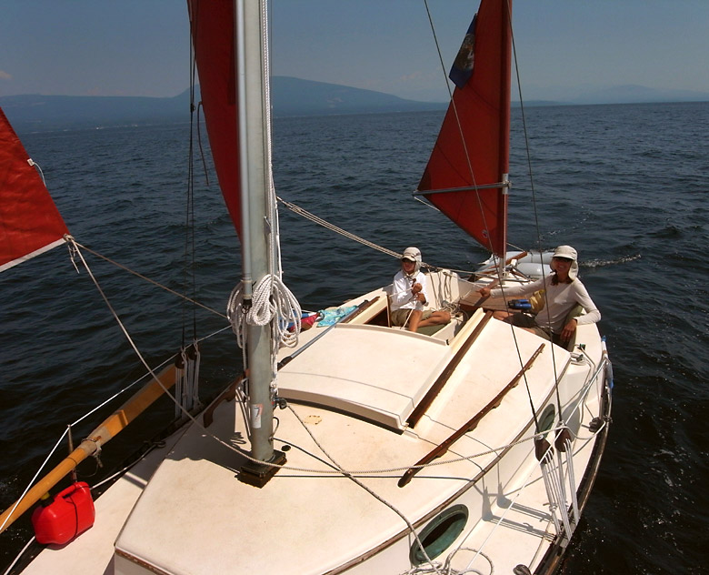 | Finally the wind eased and the sheets were let out after beating into a 15-17kn headwind for two hours in the early morning. Lawrence Point, Orcas island. |